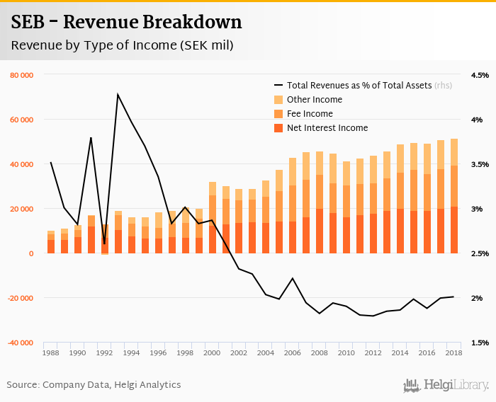 SEB generated total banking revenues of SEK 51,488 mil in 2018, up 1.14% compared to the previous year.