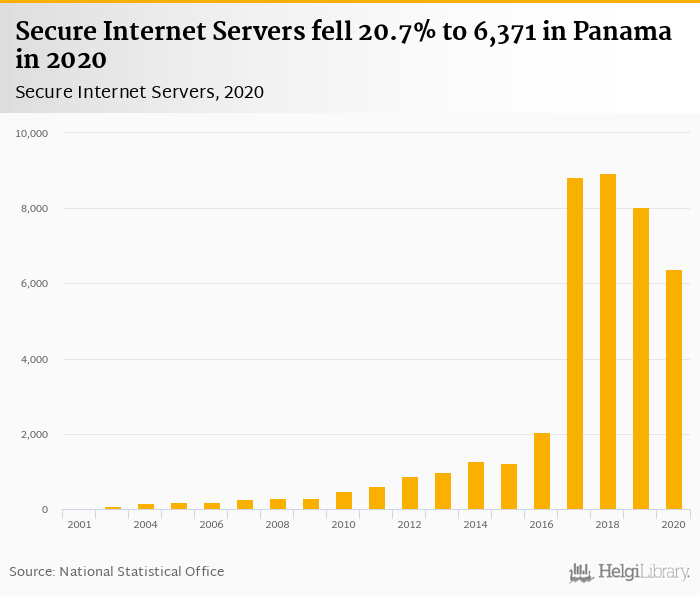 Secure internet servers fell 20.7% to 6,371 in Panama in 2020, according to World Bank.