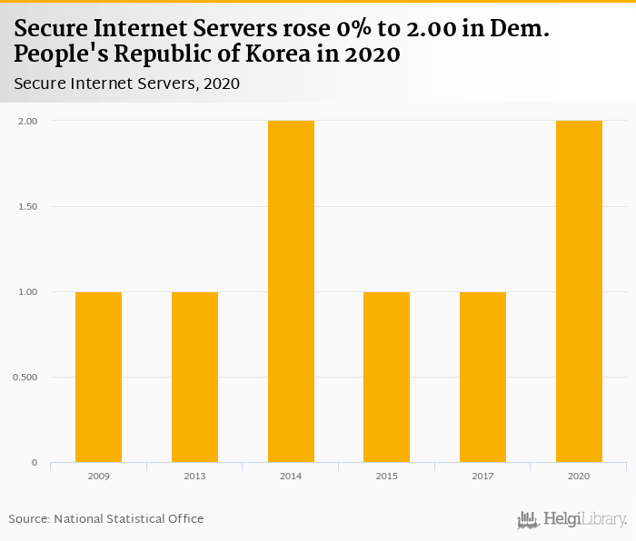 Secure Internet Servers rose 0% to 2.00 in Dem. People's Republic of Korea in 2020