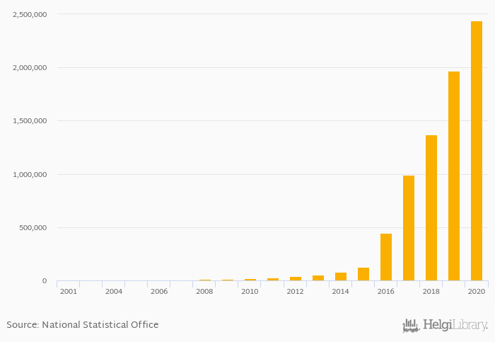 | Poland | 616,219 | 782,319 | 954,351 | 1,161,013 | 1,280,389 | |||||||||||||||||