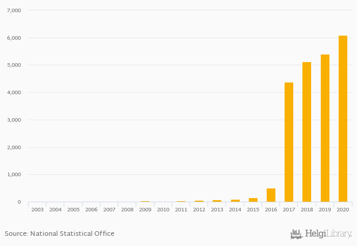 | Russia | 749,930 | 1,348,308 | 1,923,034 | 2,346,348 | 2,875,945 | |||||||||||||||||