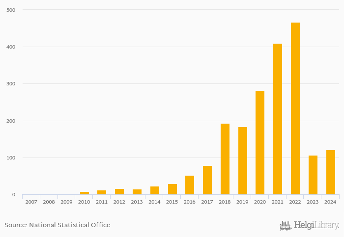 | Uganda | 864 | 973 | 1,573 | 1,580 | 2,075 |