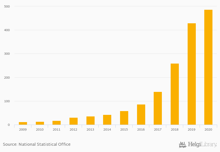 | Hungary | 188,120 | 256,400 | 319,932 | 405,489 | 493,765 | |||||||||||||||||