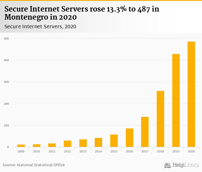 Secure internet servers rose 13.3% to 487 in Montenegro in 2020, according to World Bank.