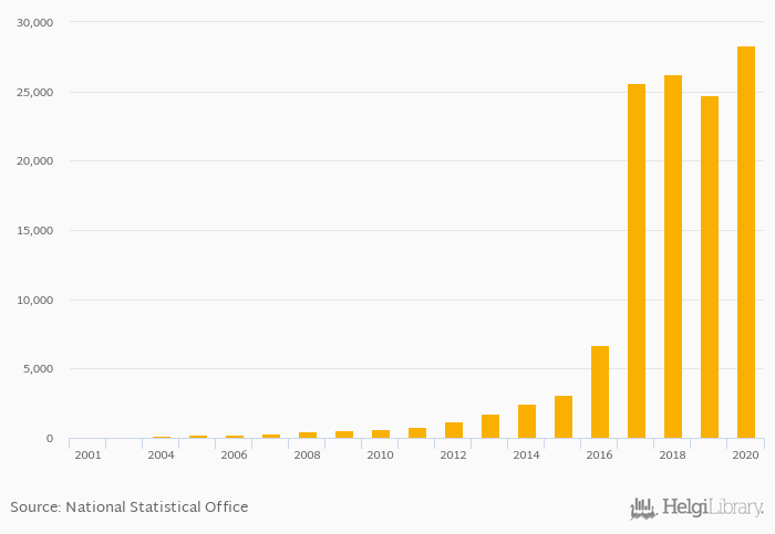| Poland | 616,219 | 782,319 | 954,351 | 1,161,013 | 1,280,389 | |||||||||||||||||