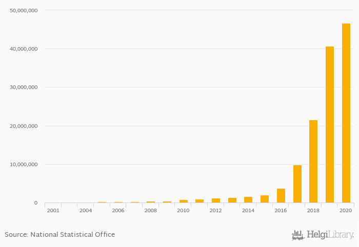 | Russia | 749,930 | 1,348,308 | 1,923,034 | 2,346,348 | 2,875,945 | |||||||||||||||||