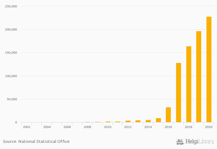 | Belgium | 159,673 | 225,822 | 279,411 | 328,693 | 360,344 | |||||||||||||||||