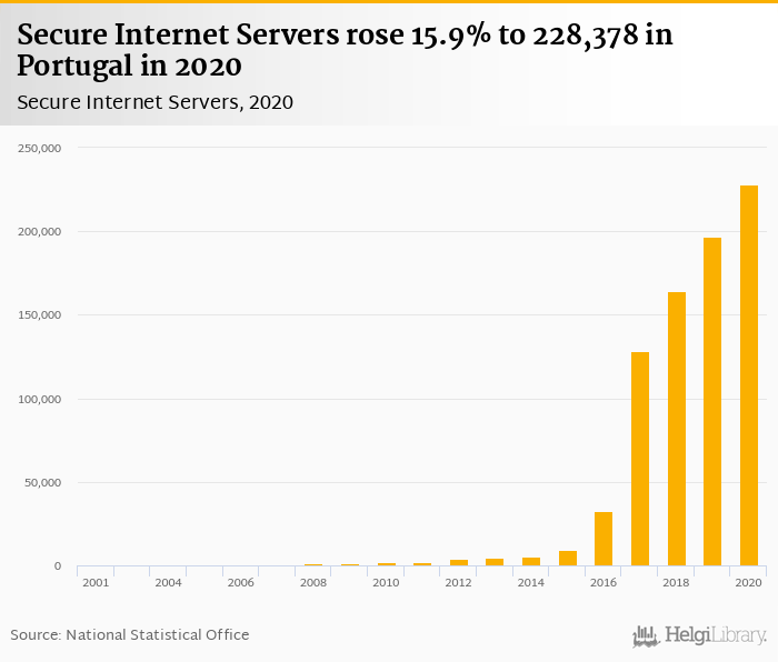 Secure internet servers rose 15.9% to 228,378 in Portugal in 2020, according to World Bank.