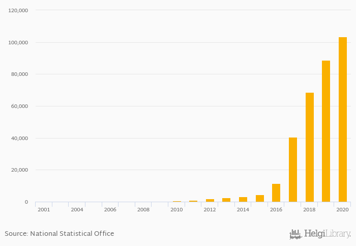 | Czechia | 450,120 | 599,619 | 723,194 | 797,732 | 913,598 | |||||||||||||||||