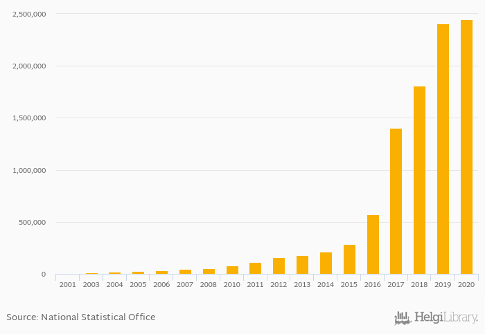 | Poland | 616,219 | 782,319 | 954,351 | 1,161,013 | 1,280,389 | |||||||||||||||||