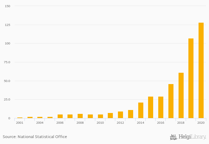 Secure internet servers rose 19.6% to 128 in Swaziland in 2020, according to World Bank.