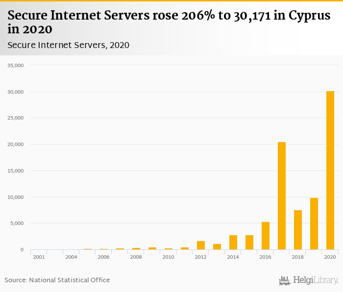 Secure Internet Servers rose 206% to 30,171 in Cyprus in 2020