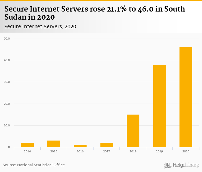 Secure Internet Servers rose 21.1% to 46.0 in South Sudan in 2020