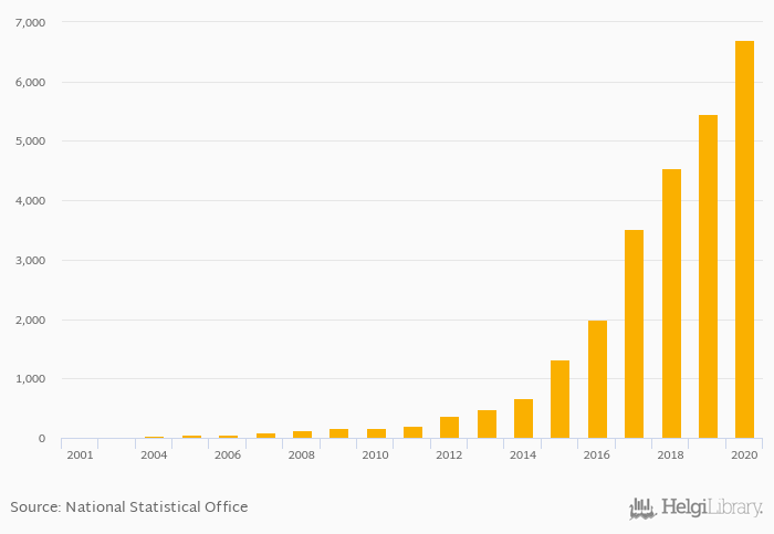 Historically, secure internet servers in Ecuador reached an all time high of 6,711 in 2020 and an all time low of 11.0 in 2001. When compared to Ecuador's main peers, secure internet servers in Brazil amounted to 656,211, 20,646 in Colombia, 6,371 in Panama and 15,020 in Peru in 2020.