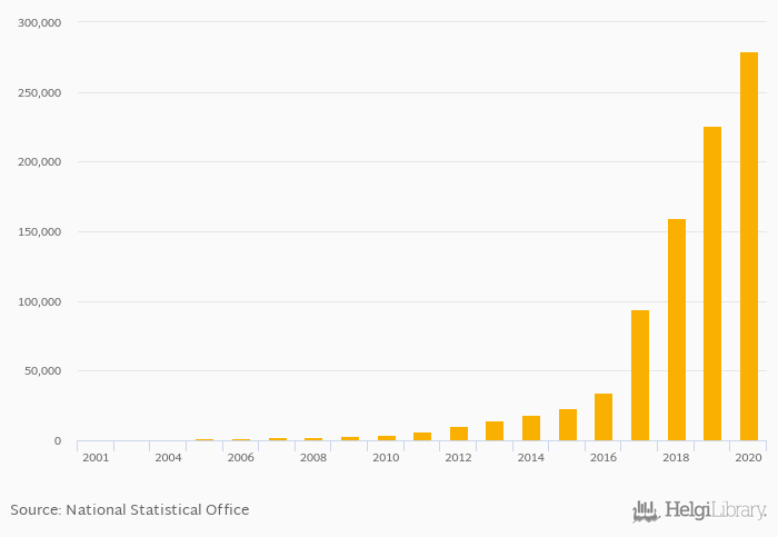 | Poland | 616,219 | 782,319 | 954,351 | 1,161,013 | 1,280,389 | |||||||||||||||||