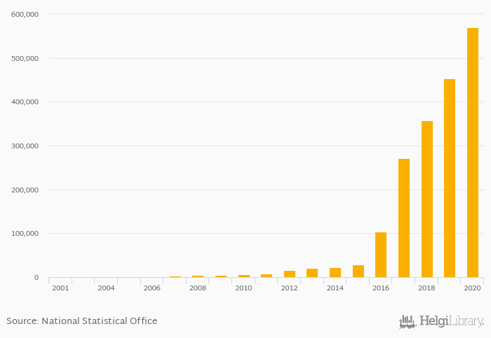 | Turkey | 356,867 | 453,706 | 570,108 | 652,636 | 778,926 | |||||||||||||||||