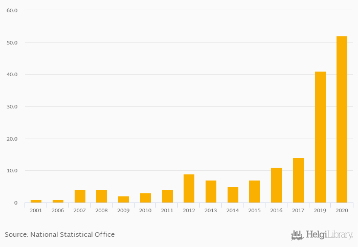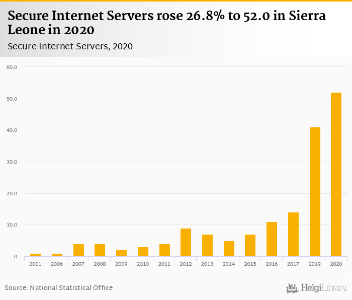 Secure internet servers rose 26.8% to 52.0 in Sierra Leone in 2020, according to World Bank.