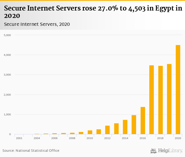Secure internet servers rose 27.0% to 4,503 in Egypt in 2020, according to World Bank.