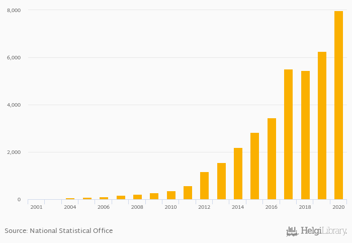 Secure internet servers rose 27.5% to 7,977 in Saudi Arabia in 2020, according to World Bank.