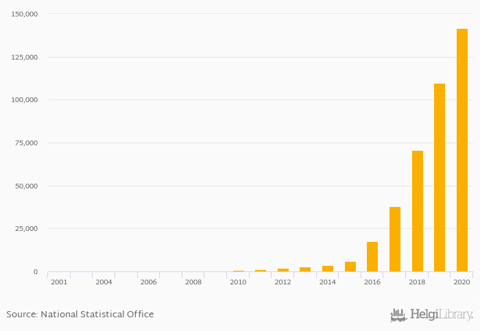 | Hungary | 188,120 | 256,400 | 319,932 | 405,489 | 493,765 | |||||||||||||||||