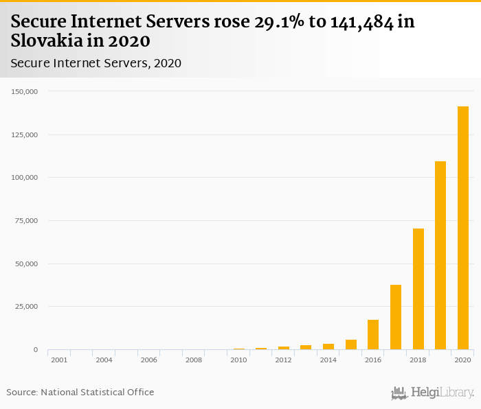 Secure internet servers rose 29.1% to 141,484 in Slovakia in 2020, according to World Bank.