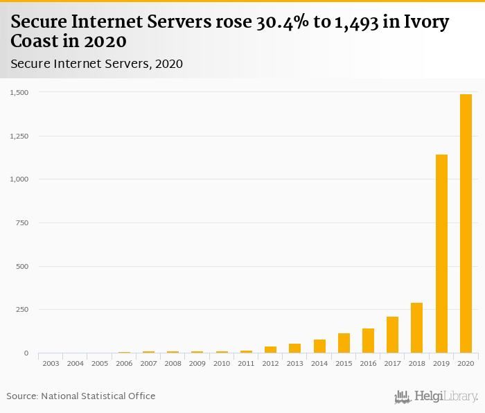 Secure Internet Servers rose 30.4% to 1,493 in Ivory Coast in 2020