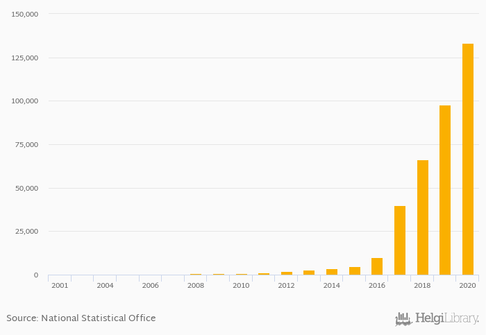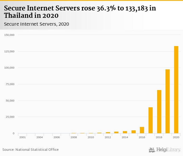 Secure internet servers rose 36.3% to 133,183 in Thailand in 2020, according to World Bank.
