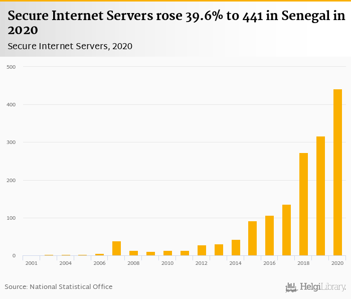 Secure internet servers rose 39.6% to 441 in Senegal in 2020, according to World Bank.