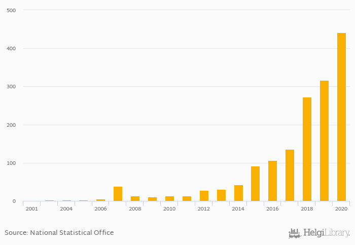 Secure internet servers rose 39.6% to 441 in Senegal in 2020, according to World Bank.