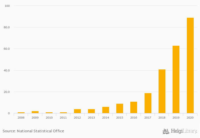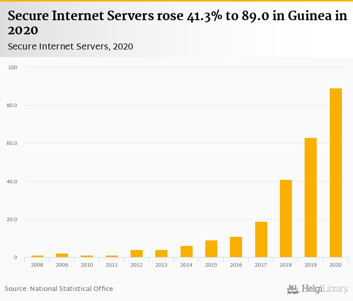 Secure internet servers rose 41.3% to 89.0 in Guinea in 2020, according to World Bank.