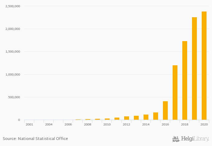 | Poland | 616,219 | 782,319 | 954,351 | 1,161,013 | 1,280,389 | |||||||||||||||||