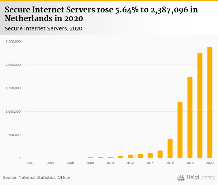 Secure Internet Servers rose 5.64% to 2,387,096 in Netherlands in 2020