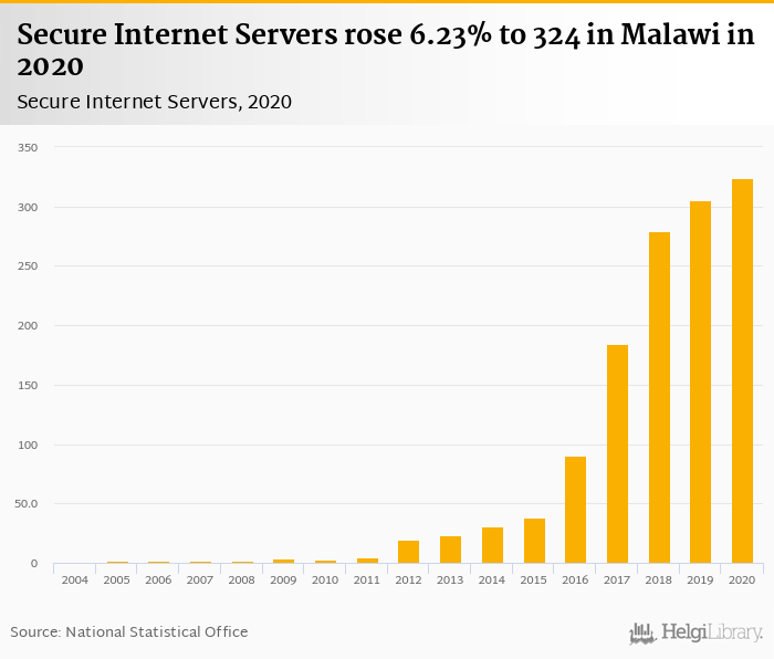 Secure Internet Servers rose 6.23% to 324 in Malawi in 2020