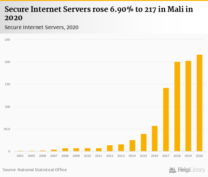Secure Internet Servers rose 6.90% to 217 in Mali in 2020