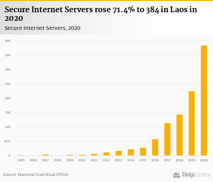 Secure internet servers rose 71.4% to 384 in Laos in 2020, according to World Bank.