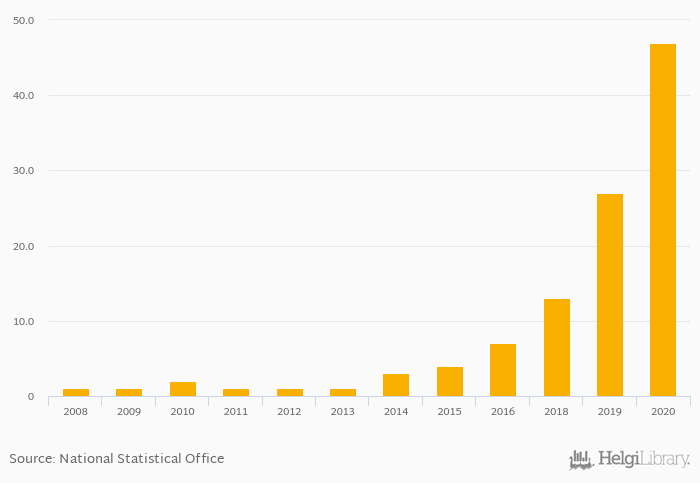 Historically, secure internet servers in Equatorial Guinea reached an all time high of 47.0 in 2020 and an all time low of 1.00 in 2008. When compared to Equatorial Guinea's main peers, secure internet servers in Cameroon amounted to 444, 46.0 in Congo, 98.0 in Gabon and 15,242 in Nigeria in 2020.