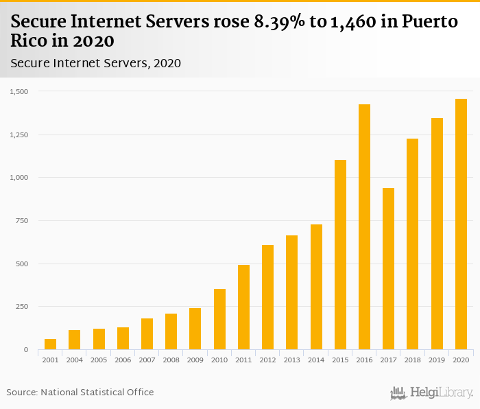 Secure internet servers rose 8.39% to 1,460 in Puerto Rico in 2020, according to World Bank.