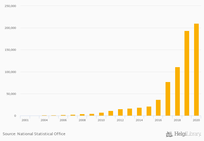| Sweden | 189,345 | 264,047 | 338,969 | 402,066 | 480,359 | |||||||||||||||||