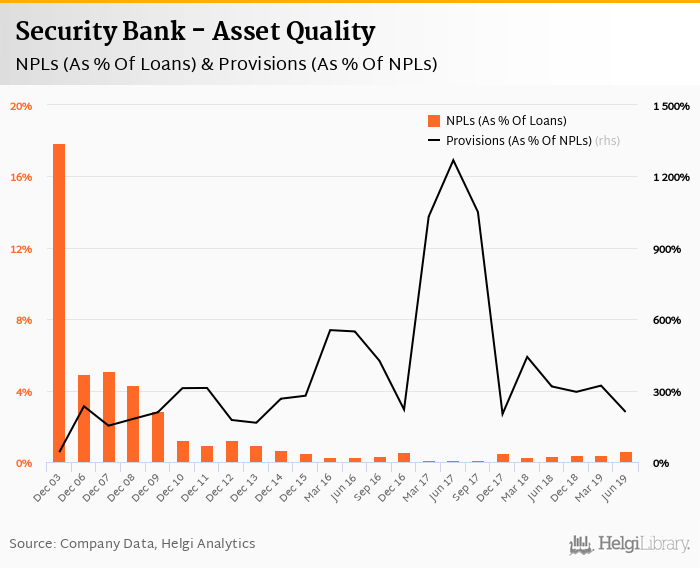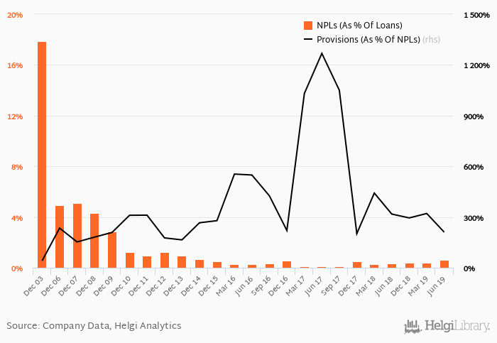 The bank created loan loss provisions worth of 0.328% of average loans in 2019-06-30. That's compared to 0.237% of loans the bank put aside to its cost on average in the last five years.