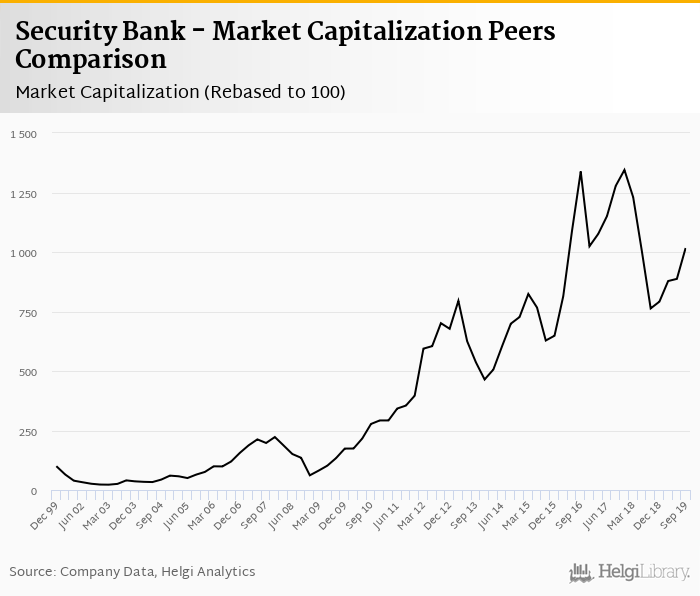 Security Bank stock traded at PHP 197 per share at the end of third quarter of 2019 implying a market capitalization of USD 2,865 mil.