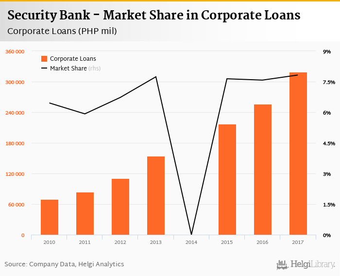 Security Bank's corporate loans reached PHP 319,199 mil in 2017, up 24.5% compared to the previous year.
