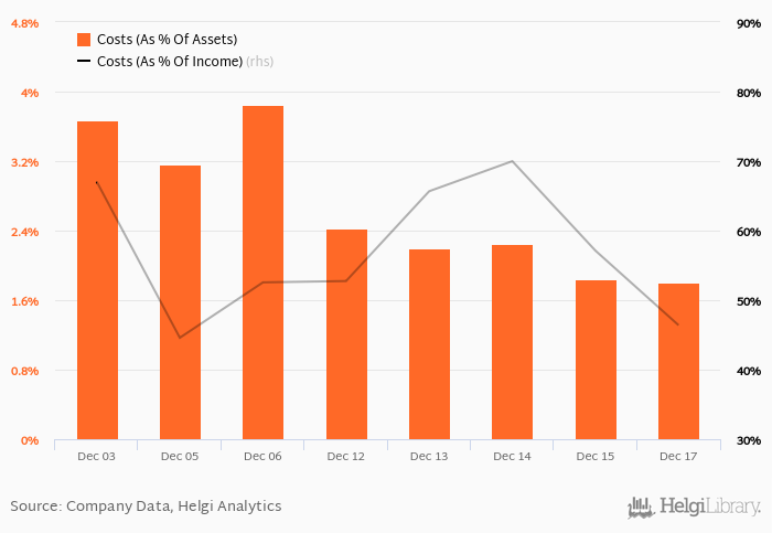 When compared to total assets, bank's cost amounted to 1.80% in 4Q2017, down from in the previous quarter.