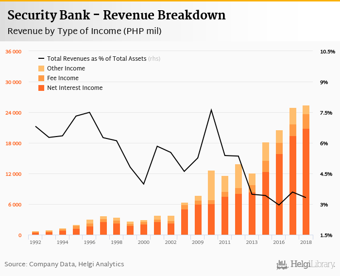 Security Bank generated total banking revenues of PHP 25,421 mil in 2018, up 2.03% compared to the previous year.