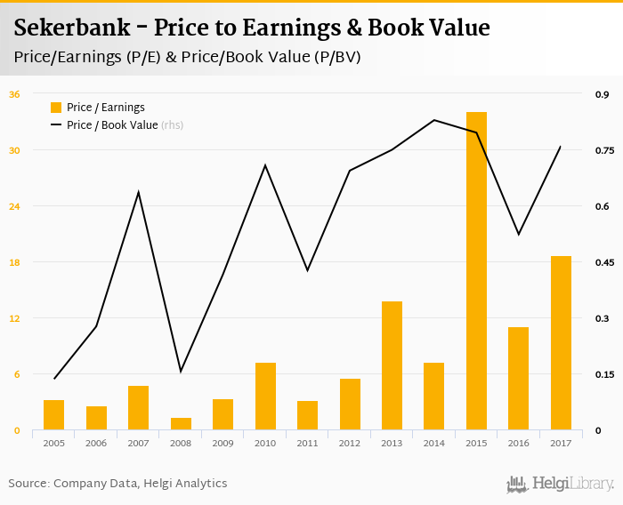 Sekerbank stock traded at TRY 1.83 per share at the end 2017 implying a market capitalization of USD 560 mil.