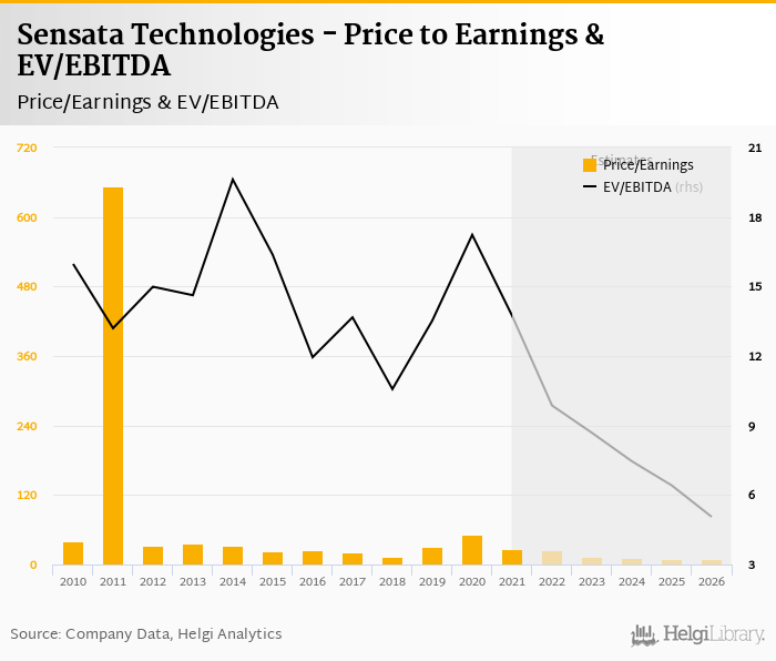 Sensata Technologies stock traded at USD 61.7 per share at the end 2021 translating into a market capitalization of USD 9,909 mil.