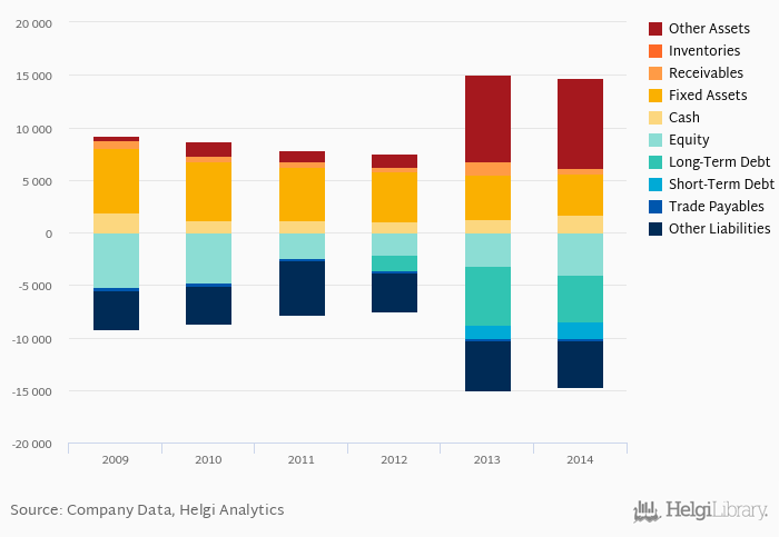 Net debt against equity is up 1.41 pp from five years ago (-0.365). The ratio against EBITDA increased from -1.52x seen in 2009 to 2.27x.