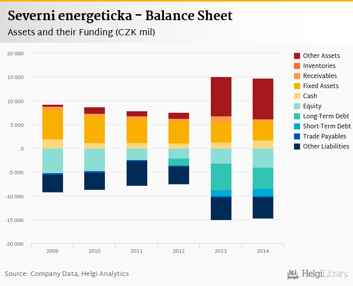 Severni energeticka's total assets reached CZK 14,697 mil at the end of 2014, down 2.08% compared to the previous year.