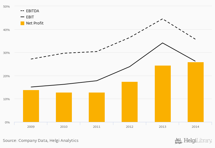 On the operating level, the EBITDA margin reached 35.7% and EBIT amounted to 26.2% of sales in 2014.