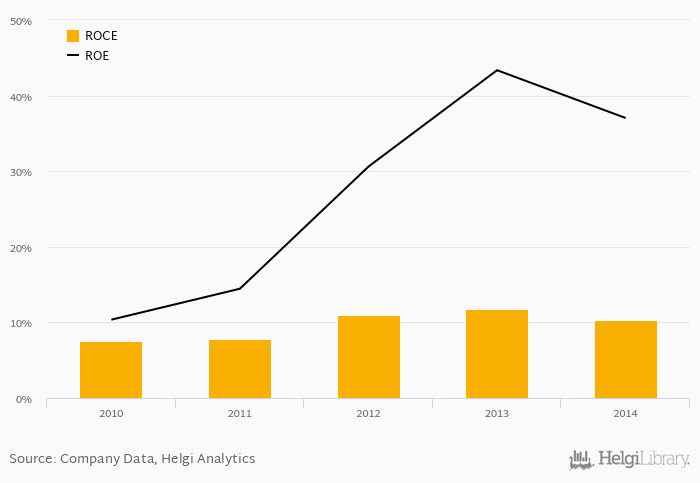 The result implies a return on equity of 37.0% and a return on invested capital of 10.3% in 2014. That is compared to an average of 27.2% and 9.67% over the last five years.