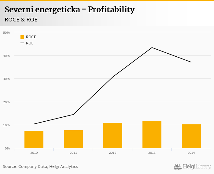 As far as Severni energeticka's peers are concerned, Severoceske doly generated ROE of 9.30% and ROCE of 7.78% in 2014. Sokolovska uhelna's profitability reached 4.38% and 7.17%, respectively. OKD operated with 1,922% and -78.2% returns in 2014.